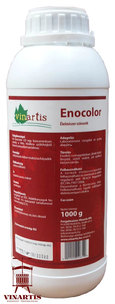 Tulajdonságai : Enocolor LD egy koncentrátum amely Vitis Vinifera szőlőhéjból kivont színezéket tartalmazza.