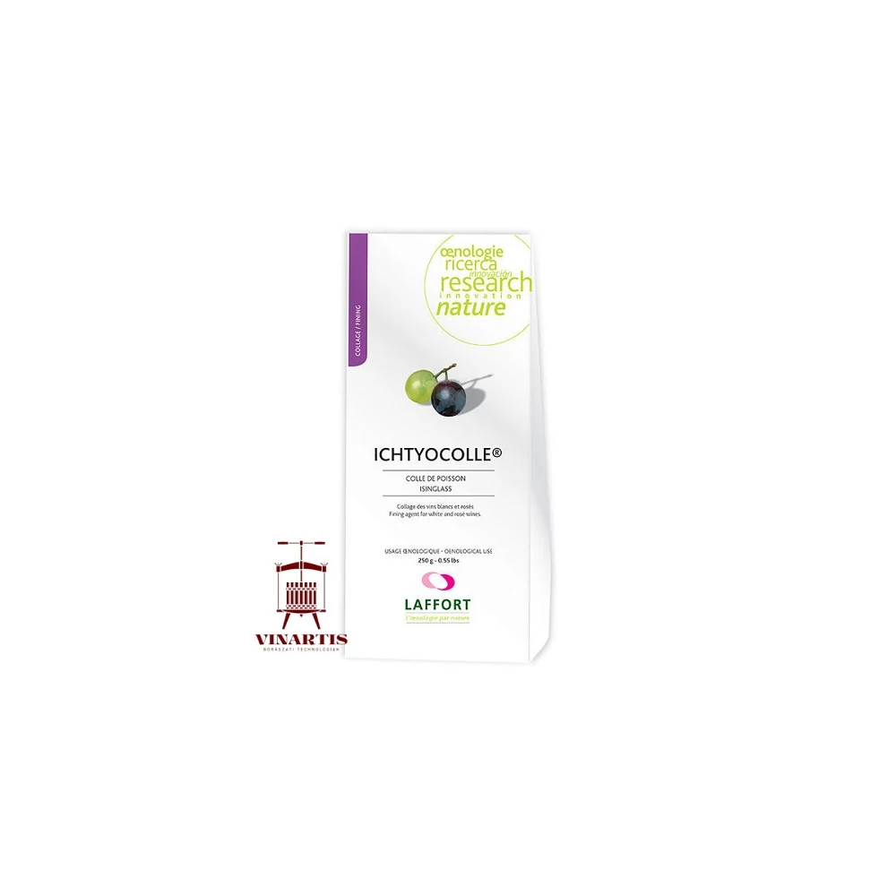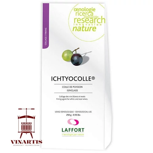 Hal-alapú (zselatin) derítőszer magas minőségű fehér és rosé borok derítésére és tisztítására. Az ICHTYOCOLLE helyreállítja a kezelt borok érzékszervi tisztaságát és javítja szűrhetőséget.