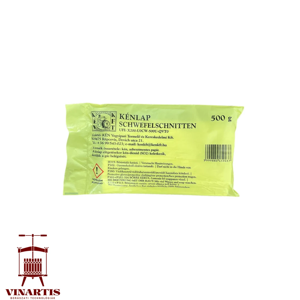 A csomagban lévő kénlapokból egy szelet elegendő 1 hl-es hordó kénezéséhez. Az űrtartalomnak megfelelő mennyiségű kénlapot( ketté is törhető a szelet) fűzze fel egy drótra( ne legyen rézből!), gyújtsa meg és helyezze a hordóba, majd dugóval zárja le. 24 óra múlva úgy emelje ki az elégett szeleteket, hogy a maradványok egyben maradjanak. Amennyiben a szeleteken a kén nem égett el ismételje meg az eljárást.