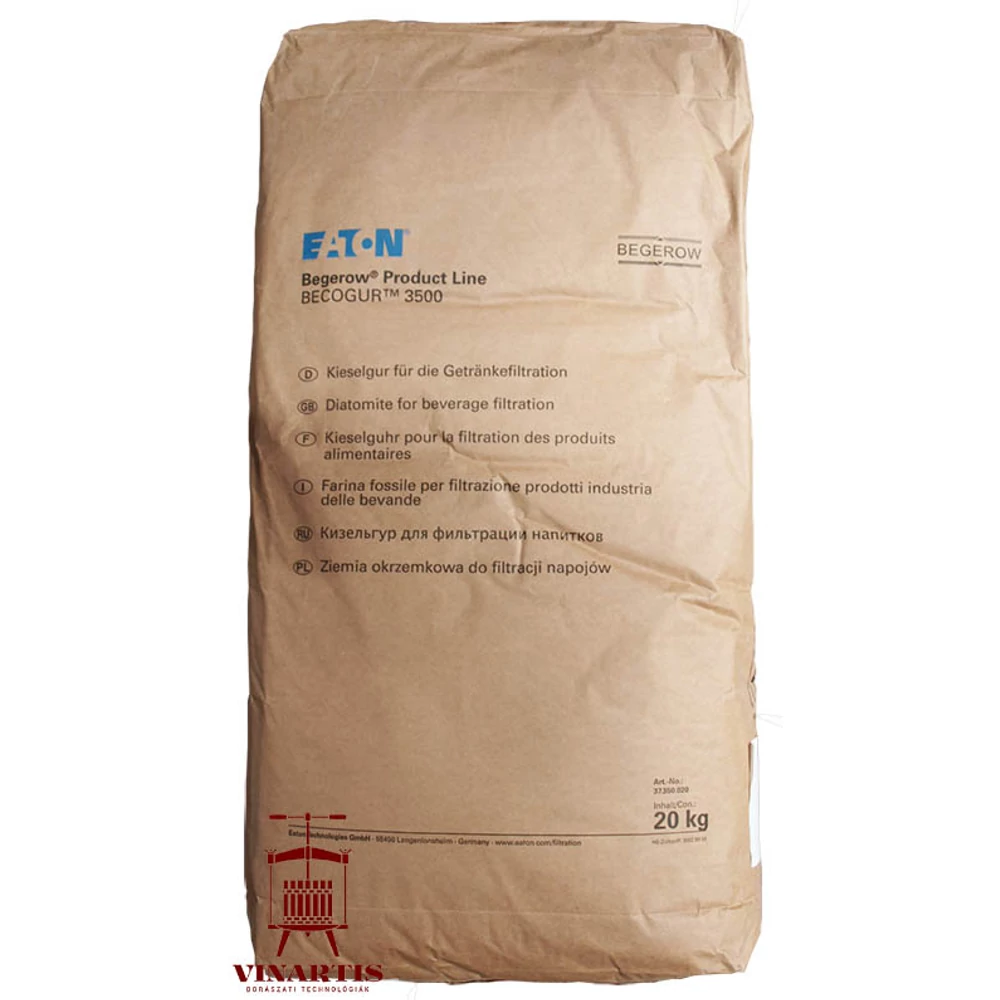 BECOGUR 3500 egy durva kovaföld, nagy seprőtartalmú élelmiszeripari, gyógyszeripari és kémiai folyadékok tisztítására. Ideálisan alkalmazható az alapszűrés elvégzésére.