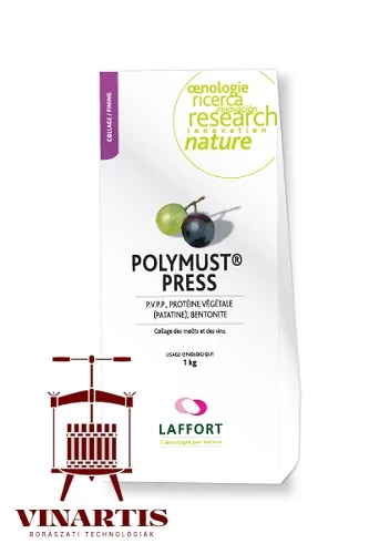 PVPP, kalcium-bentonit és növényi fehérje (patatin, burgonyafehérje-izolátum) keveréke présborok tisztítására és az oxidált jelleg csökkentésére.