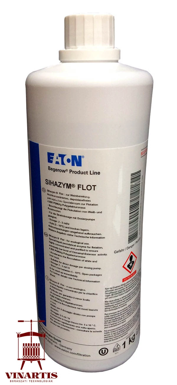 A SIHAZYM Flot enzim egy folyékony halmazállapotú készítmény , amely az Aspergillus niger bizonyos fajtáiból fermentálással állítanak elő. Egy speciális tisztítási eljárás megszünteti a cinnamyleszteráz aktivitást (Depsidase), az illat és szinanyagot , amely egy tiszta illatmentes enzimkészítményt eredményez.Az enzim pektináz készítmény , amely főként pektinliáz,-poligalakturonáz,és pektineszteráz aktivitással rendelkezik. A pektintartalmú részecskék bontása a mustban gyorsan végbemegy.