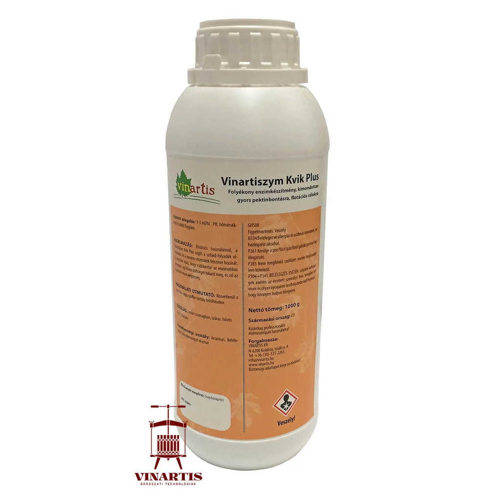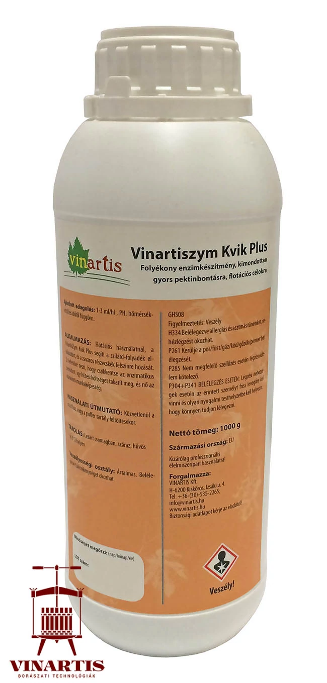 A Vinartiszym Kvik Plus egy eredeti és innovatív enzimes készítmény, melyet kifejezetten flotáláshoz fejlesztettek ki. Két alapvető feltétel szükséges a jó flotáláshoz: a must viszkozitásának csökkentése, és a kellő mennyiségű hab, ami a felszínre jön. A magas pectinlyase koncentráció, ami több mint kétszerese a normál pektinbontó enzimekhez képest, lehetővé teszi a must gyors viszkozitásának csökkentését, ugyanabban az időben, a pectinesterase és poligalakturonáz tartalom a pektint optimális méretűvé vágják, lehetővé téve egy sűrű és kompakt hab kialakulását, mely jól elkülönül a tiszta alaptól.
