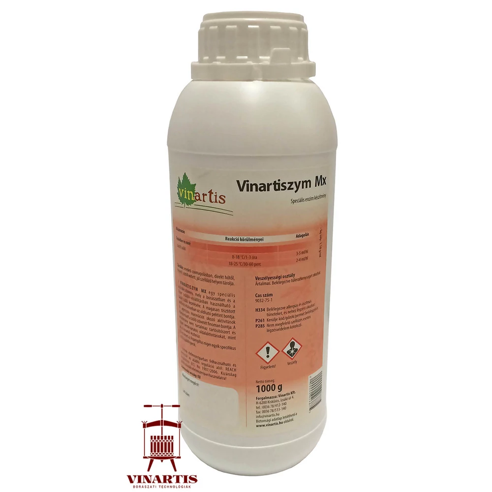 A VINARTISZYM MX egy speciális enzimkészítmény, mely a borászatban és a fehér szőlőlé-előállításban használható a darált szőlő kezelésére. A magasan tisztított pektináz elsősorban az oldható pektint bontja. Az agresszív macerációt okozó aktivitások hiánya miatt a szőlő szövetét finoman bontja. A készítmény nem tartalmaz tartósítószert és olyan nemkívánatos oldalaktivitásokat, mint pl. a cinnamil-észteráz.