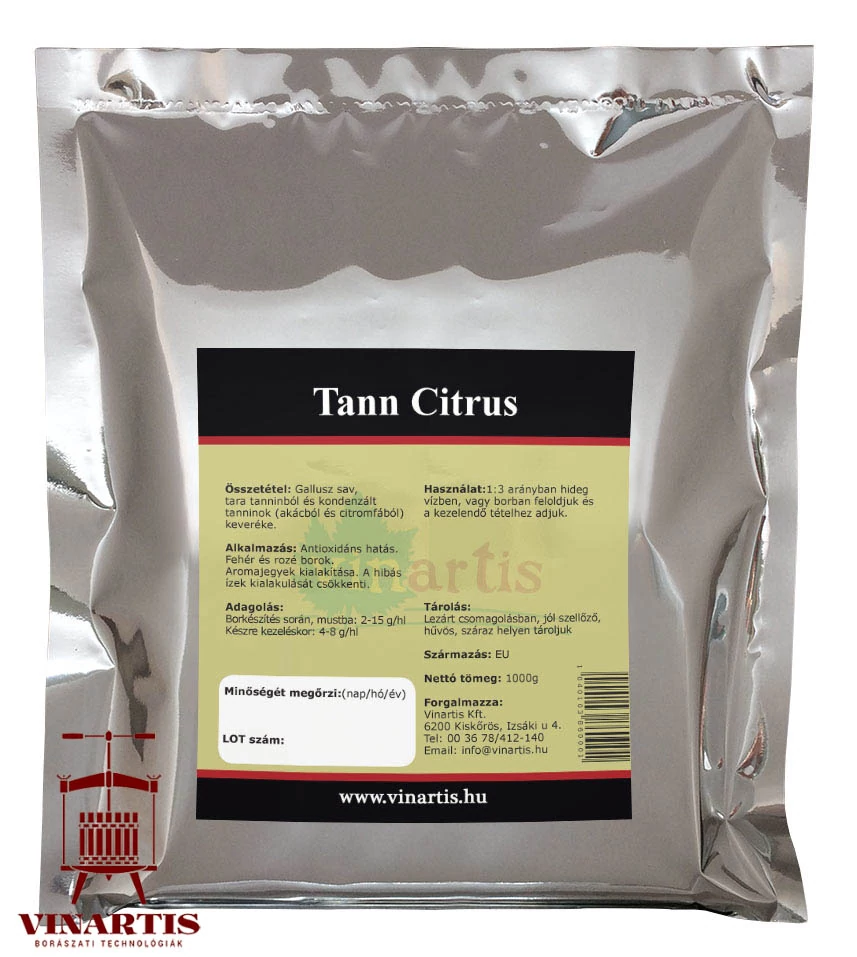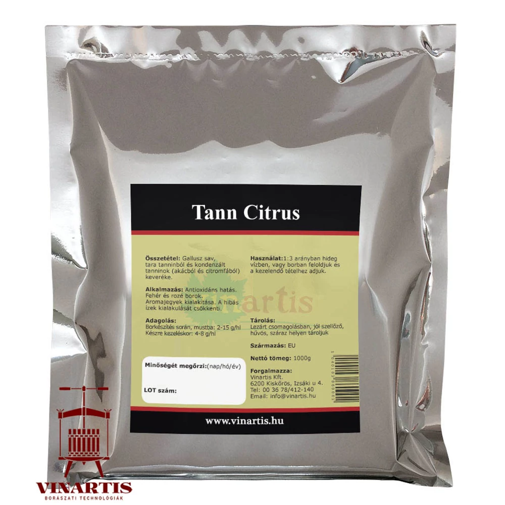 Amorf, finomszemcsés sárgás színű por, enyhe fás, mézes illattal. A Tan Citrus különleges és kíméletes előállításnak köszönhetően virágos, gyümölcsös aromajegyekben, prekurzorokban (terpének, norisoprenoidok, stb.) gazdag tanninkeverék, melynek használatával- erjedés során, megfelelő élesztővel párosítva, és kész bor esetében is - ízben, illatban, zamatban gazdagabb, gyümölcsösebb, intenzívebb bort kapunk (citrusfélék, zöldalma, fehér virágok, friss szőlő, stb.). Összetételének köszönhetően kiváló antioxidáns és strukturáló, stabilizáló hatású szer.